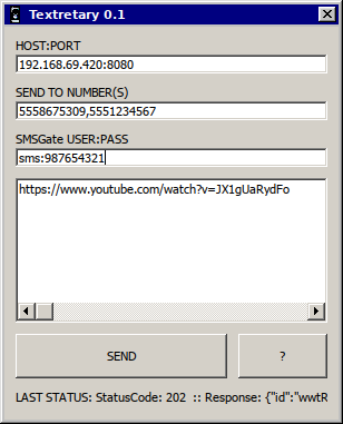 Textretary![]() For use with [SMSGate]. Just a GUI to send SMS/texts from your computer through your cell phone. Screenshot is the program running in wine. Uses: